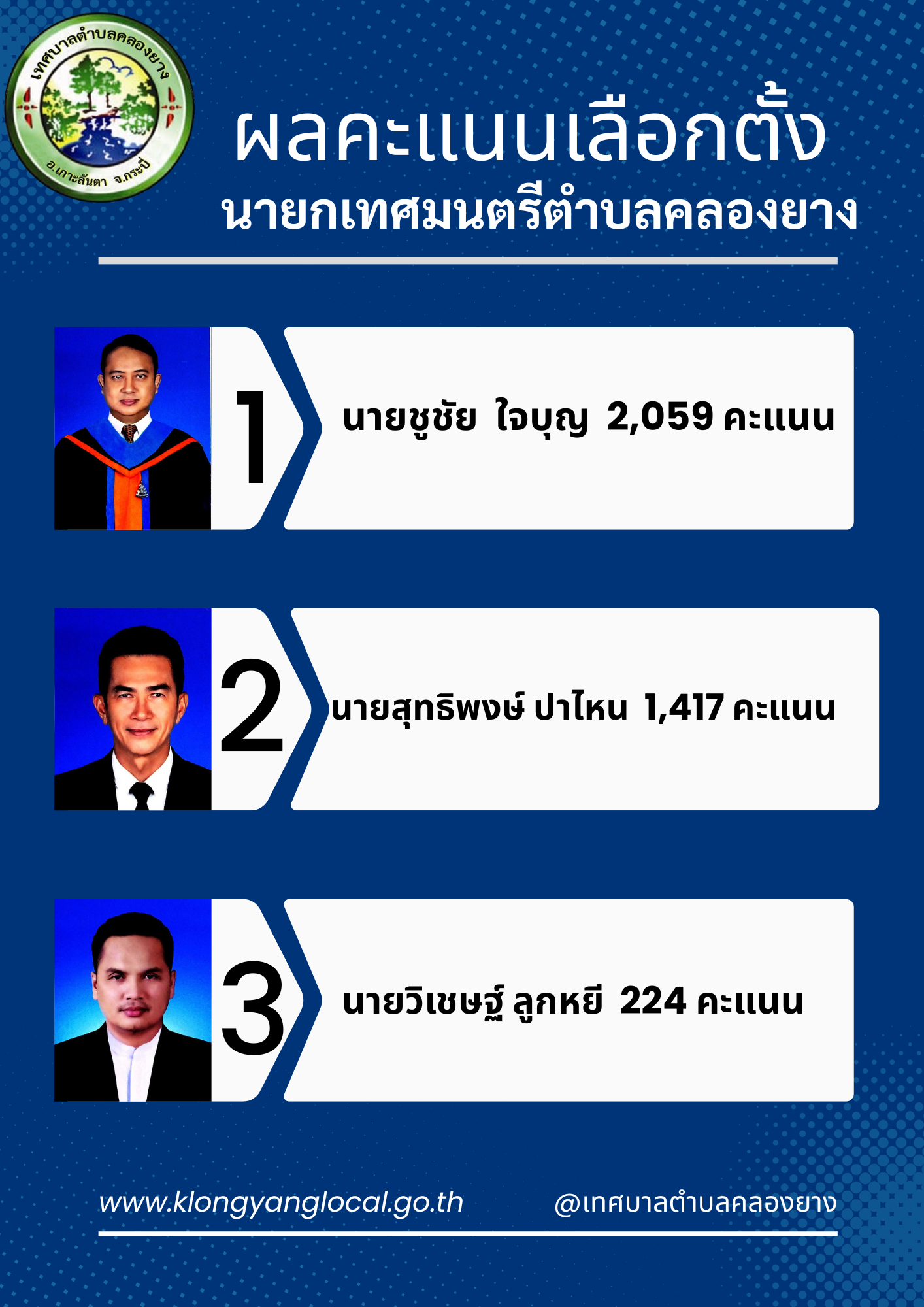 ผลคะแนนเลือกตั้ง นายกเทศมนตรีตำบลคลองยาง