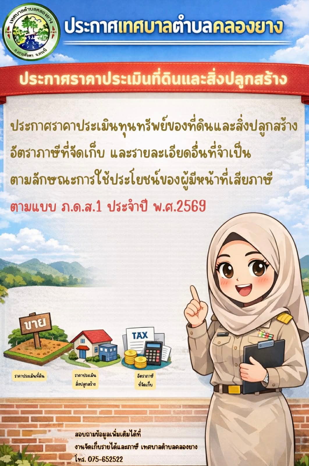 ประกาศ เรื่อง ประกาศราคาประเมินทุนทรัพย์ของที่ดินและสิ่งปลูกสร้าง